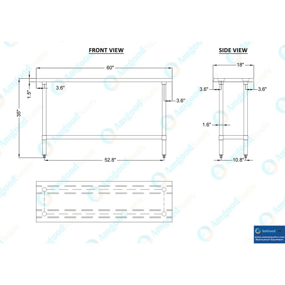 Stainless Steel Work Table with Galvanized Under Shelf Common Applications: Food Prep Table For Commercial Kitchen Island Counter Extension Utility Bench for Shop Professional Work Station Garage Work Bench Laundry Clothes Folding Table Brewing Setup Exam Table For Veterinarians Butcher Shop Product Specifications Stainless steel worktable surface has curved edges for safety and comfort.It incorporates a heavy Duty. adjustable galvanized under shelf and leveling feet.18 Gauge 430 Stainless Steel Top Galvanized Adjustable Under Shelf Adjustable feet to compensate for uneven floor Adjustable under shelf – great for storage Height: 35 in.NSF Certified Sturdy and easy to setup Heavy Duty. Am Good Supply prides itself of being a one stop shop for all of your restaurant supply needs.Am Good Supply offers a wide selection of stainless steel work tables with galvanized legs and undershelf.All work tables are made with T-430 18-gauge stainless steel, designed to be easily assembled, and are NSF certified.Stainless steel work tables are commonly used for food prep in a commercial kitchen, as a work desk, assembly line table, work bench, and in many other residential, commercial and industrial applications.Am Good Supply work tables are known for their premium quality and economy prices.