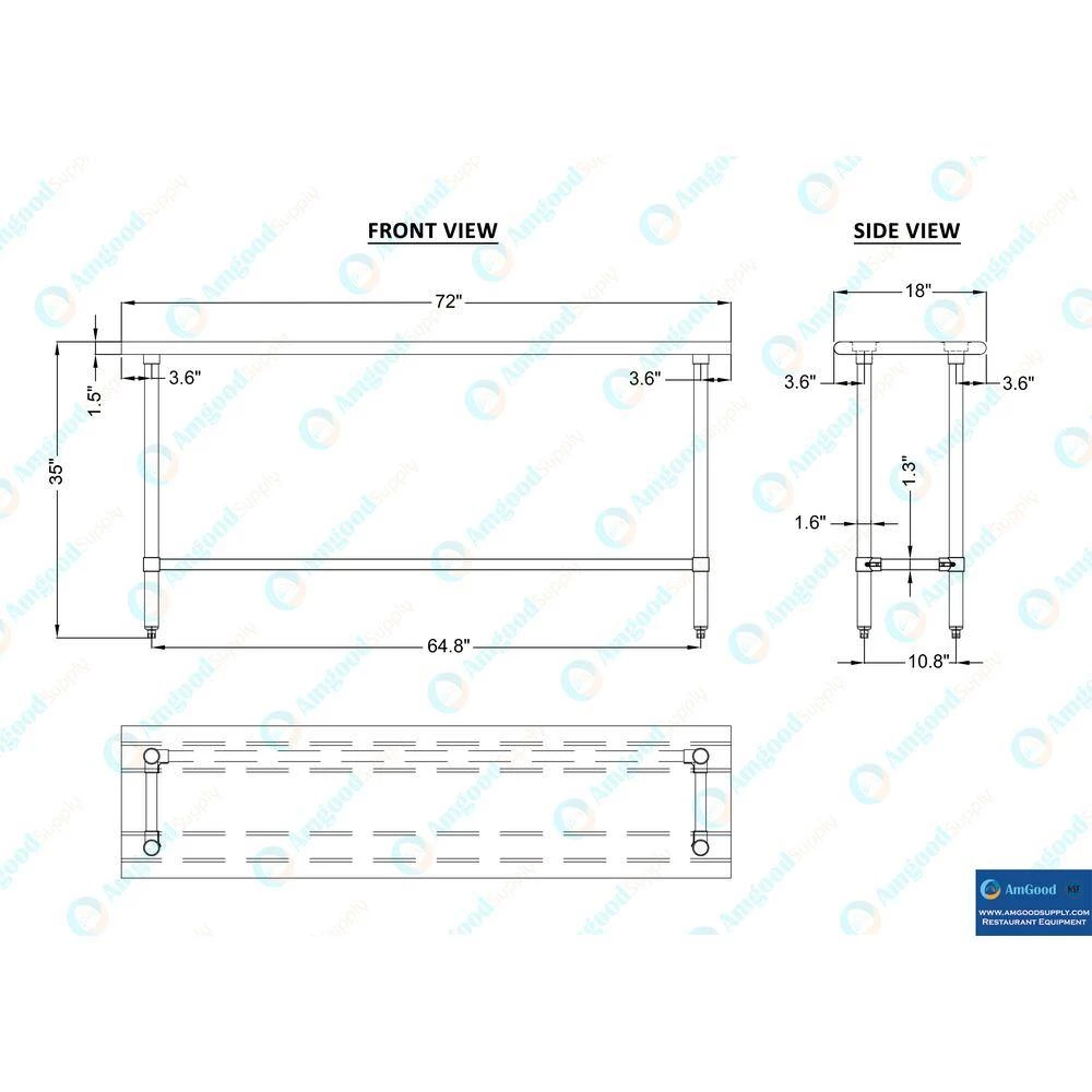 18 in. x 72 in. Stainless Steel Open Base Kitchen Utility Table Metal Prep Table by AMGOOD -Basicwise Online Shop stainless steel amgood kitchen prep tables amg wt 1872 rcb 76 1000