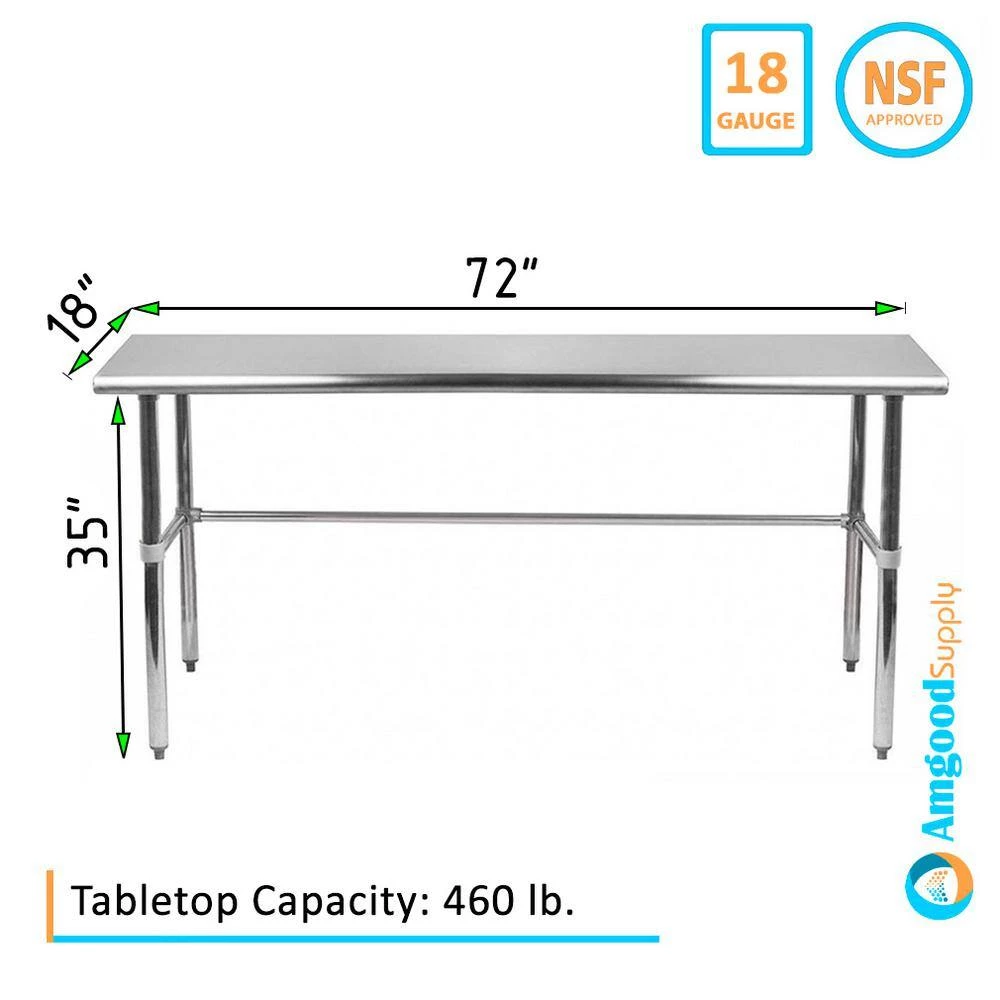18 in. x 72 in. Stainless Steel Open Base Kitchen Utility Table Metal Prep Table by AMGOOD
