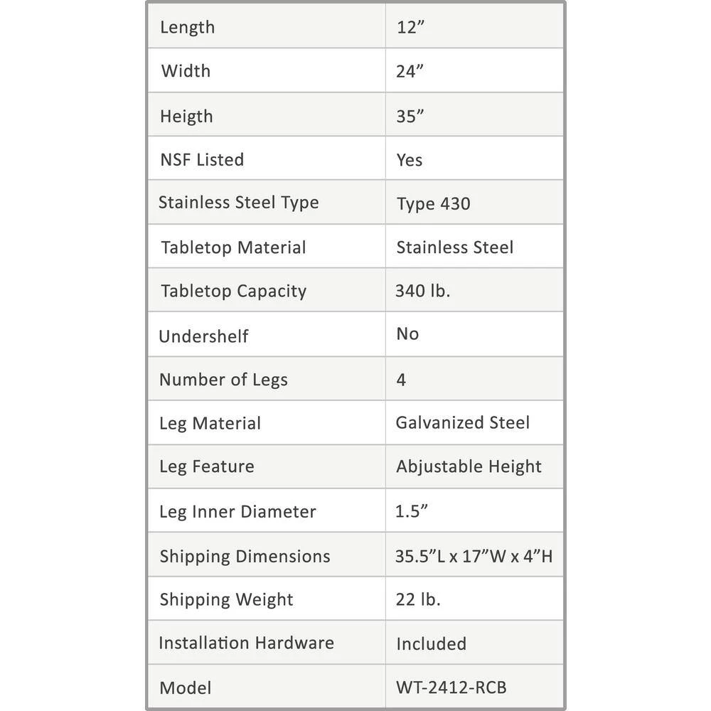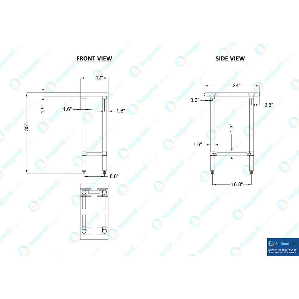 24 in. x 12 in. Stainless Steel Open Base Kitchen Utility Table Metal Prep Table by AMGOOD