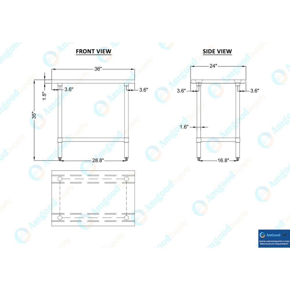 Stainless Steel Work Table with Galvanized Under Shelf Common Applications: Food Prep Table For Commercial Kitchen Island Counter Extension Utility Bench for Shop Professional Work Station Garage Work Bench Laundry Clothes Folding Table Brewing Setup Exam Table For Veterinarians Butcher Shop Product Specifications Stainless steel worktable surface has curved edges for safety and comfort.It incorporates a heavy Duty. adjustable galvanized under shelf and leveling feet.18 Gauge 430 Stainless Steel Top Galvanized Adjustable Under Shelf Adjustable feet to compensate for uneven floor Adjustable under shelf – great for storage Height: 35 in.NSF Certified Sturdy and easy to setup Heavy Duty. Am Good Supply prides itself of being a one stop shop for all of your restaurant supply needs.Am Good Supply offers a wide selection of stainless steel work tables with galvanized legs and undershelf.All work tables are made with T-430 18-gauge stainless steel, designed to be easily assembled, and are NSF certified.Stainless steel work tables are commonly used for food prep in a commercial kitchen, as a work desk, assembly line table, work bench, and in many other residential, commercial and industrial applications.Am Good Supply work tables are known for their premium quality and economy prices.