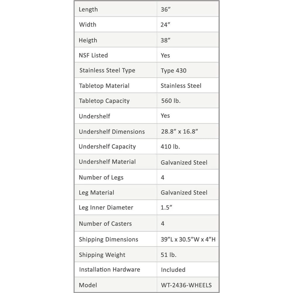 24 in. x 36 in. Stainless Steel Work Table with Casters : Mobile Metal Kitchen Utility Table with Bottom Shelf by AMGOOD