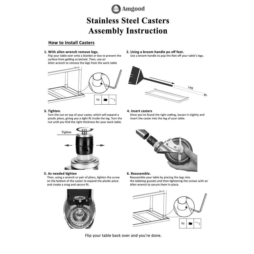 • Made with corrosion resistant 430 Stainless Steel table top.Assemble and install with no effort.No additional tool or kit needed.Assembly instructions and everything you need is included.