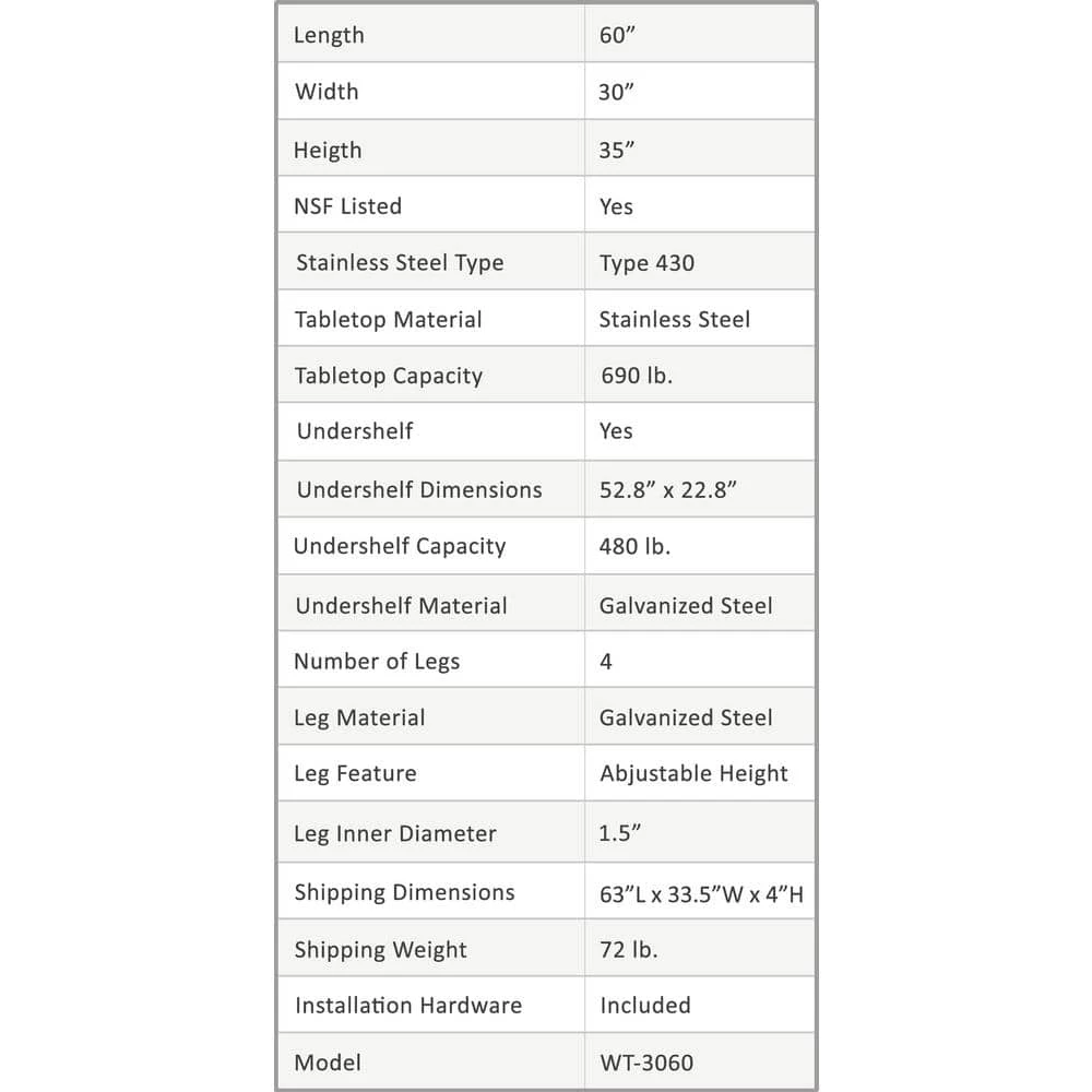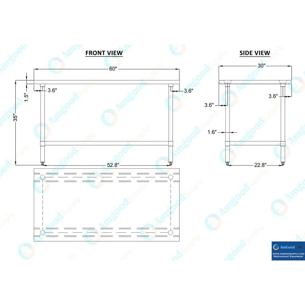30 in. x 60 in. Stainless Steel Kitchen Utility Table with Adjustable Bottom Shelf by AMGOOD