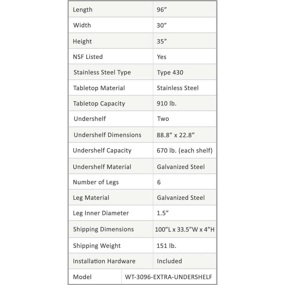 30 in. x 96 in. Stainless Steel Kitchen Utility Table with 2 Adjustable Shelves : Metal Prep Table by AMGOOD - Image 7