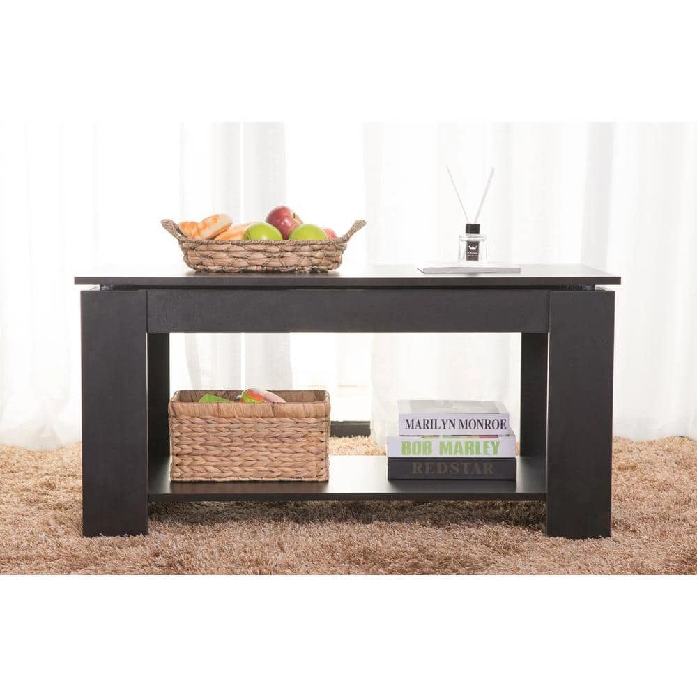 You need practical and easy to maintain furniture to make your living room more comfortable. This large top lift coffee table combines storage, work space, and modern style to make practical living attainable. Top table lifts up to use as a desk and reveals large interior storage compartment to store items at hands reach. For extra organization, the bottom shelf provides enough room to keep books, remotes, blankets, and trinkets. Practical furniture does exist.
