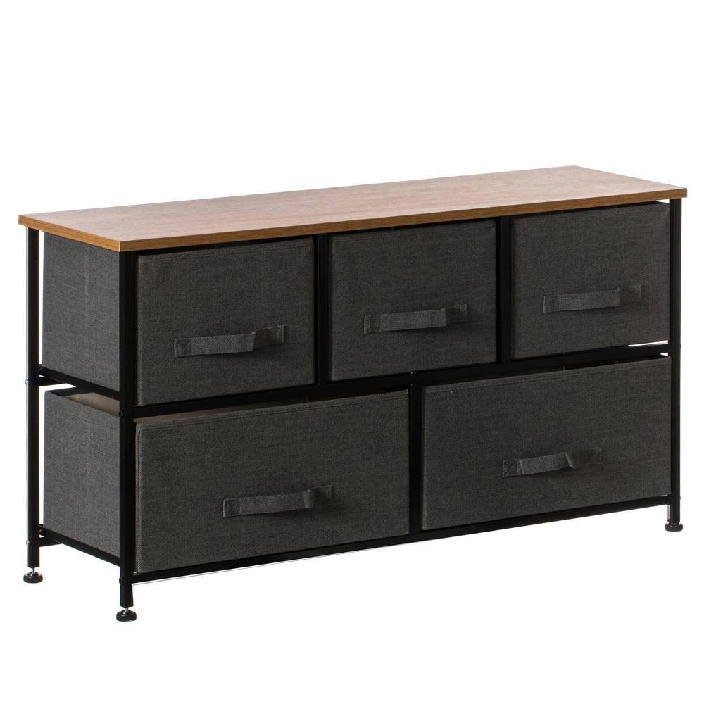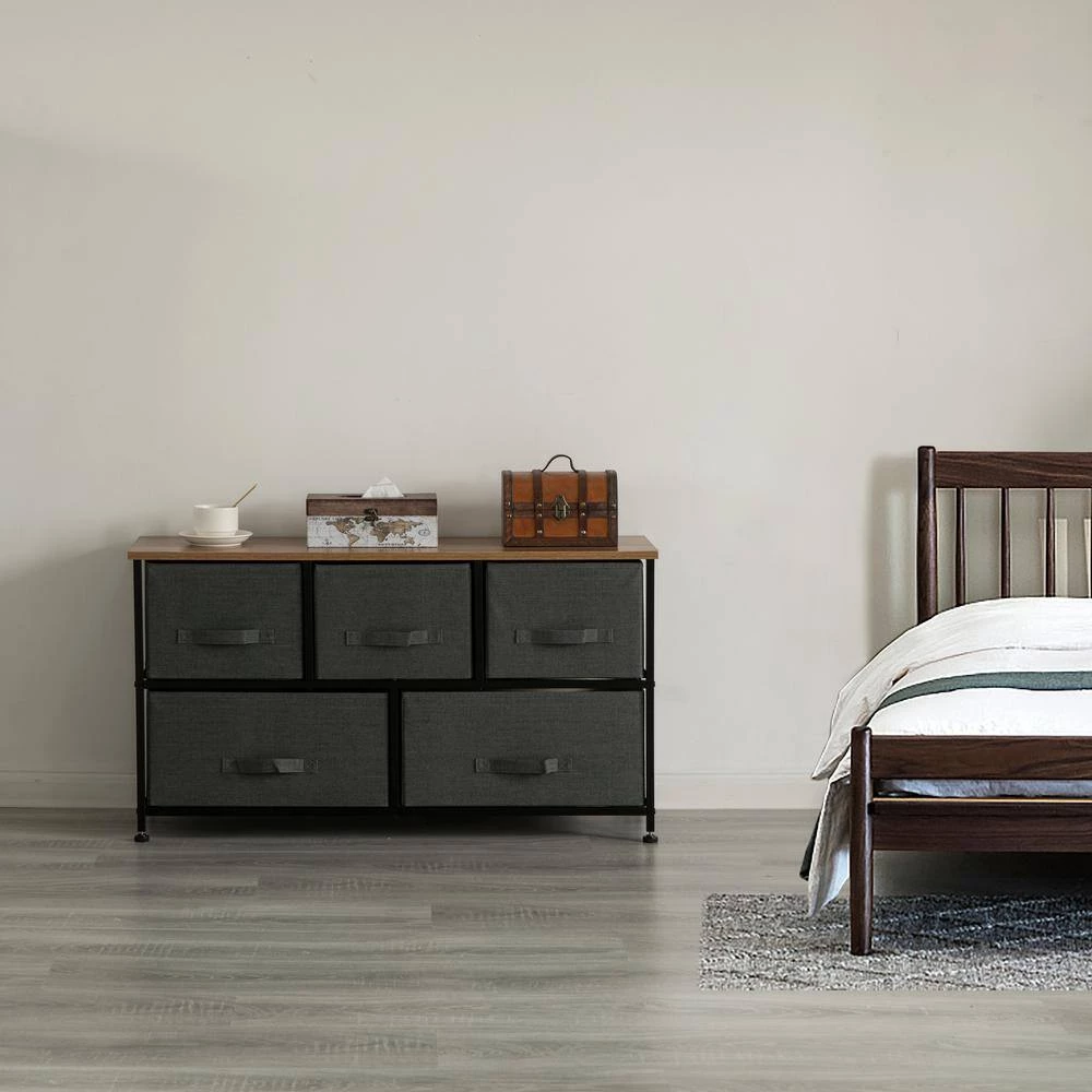 Five Collapsible fabric drawers include 2 sizes to satisfy your different storage needs with shelving things as you wish on the top board. Use in or out of the closet and keep clutter under control by storing all of your clothing and accessories in one convenient place. This dresser can also be used as a shelf, or nightstand. The wood top is perfect for placing your gadgets, alarm clock, or even books.