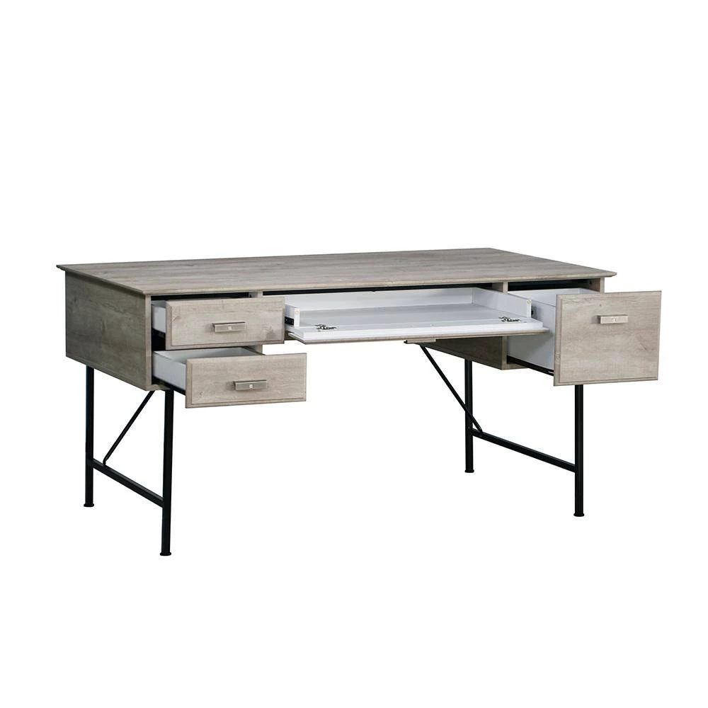 - Its finish with sturdy metal framework details makes this desk a topic of discussion