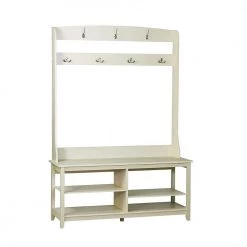 Salisbury 31.5 in. Antique White Hall Tree and Shoe Bench by SAINT BIRCH