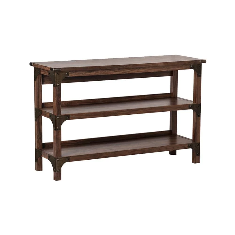 Reimagine your den or mudroom with the support of this beautiful and sophisticated console table. Boasting a warm, walnut style accented by black steel reinforcement at the corners, it breathes a sense of vintage into its surroundings. Perfect for setting the tone of your home, with your preferred potted plant or books on display. No matter you are moving to your new home, or looking to refresh your home office, it offers full line of selections catering to your needs.