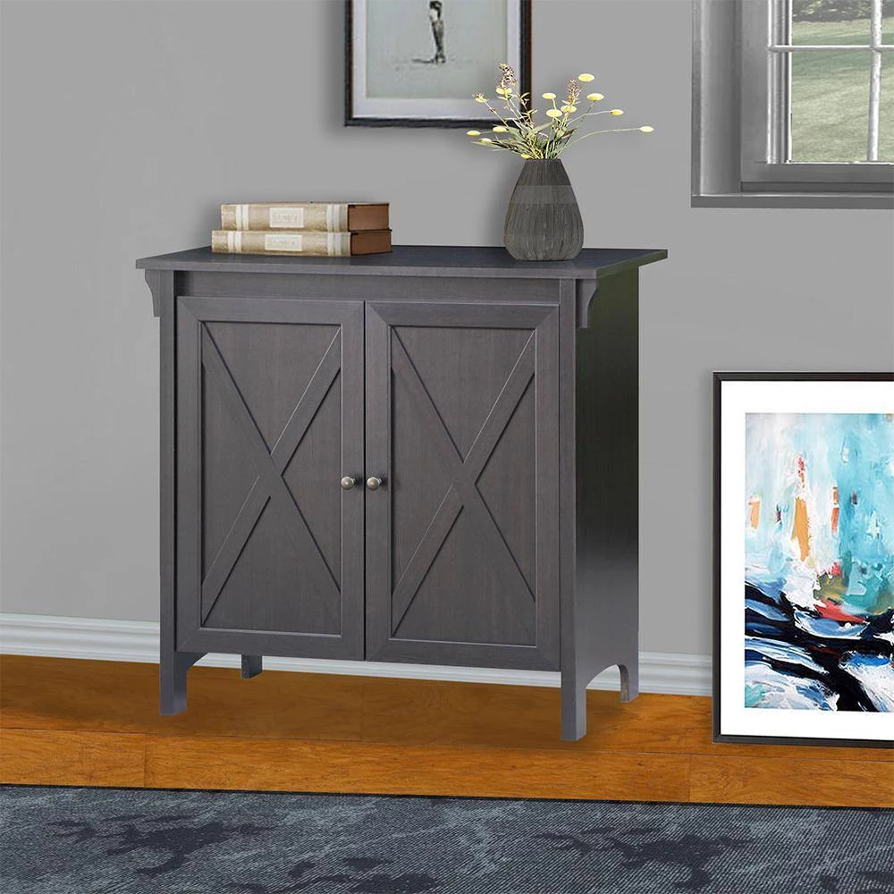 Create the perfect spot for stashing everything from office supplies to seasonal clothing with this modern farmhouse two-door storage cabinet. The ideal size for a multi-functional space, the cabinet is built with farmhouse character evident in its small details and barn-inspired X-cross accents on two doors. A wide top provides plenty display potential perfect for framed photos, a table lamp, or even a beautiful sculptural piece. This cabinet is offered in espresso and cherry wood finishes, each setting a stylish tone for your space.