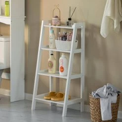49 in. White Wood 5-shelf Corner Bookcase with Open Storage by Basicwise