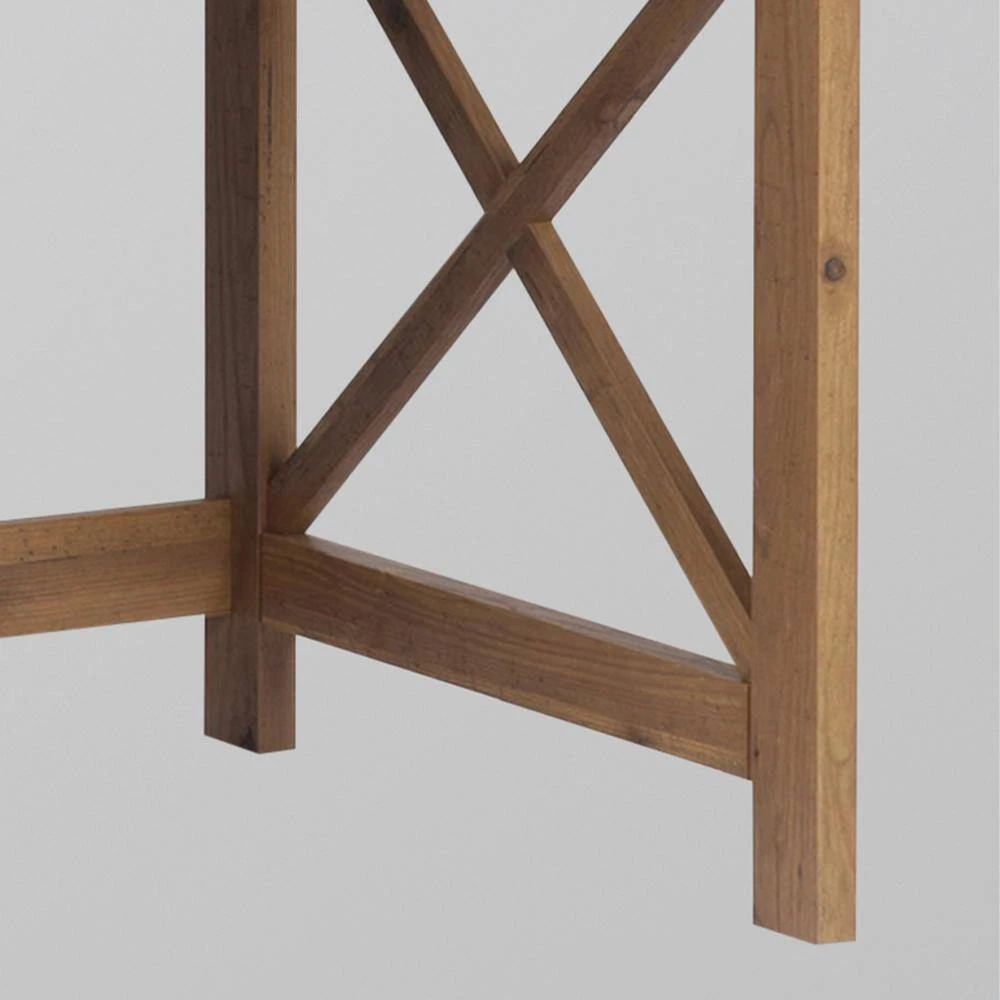 - Charming casual style includes X-cross accents on desk and shelf sides