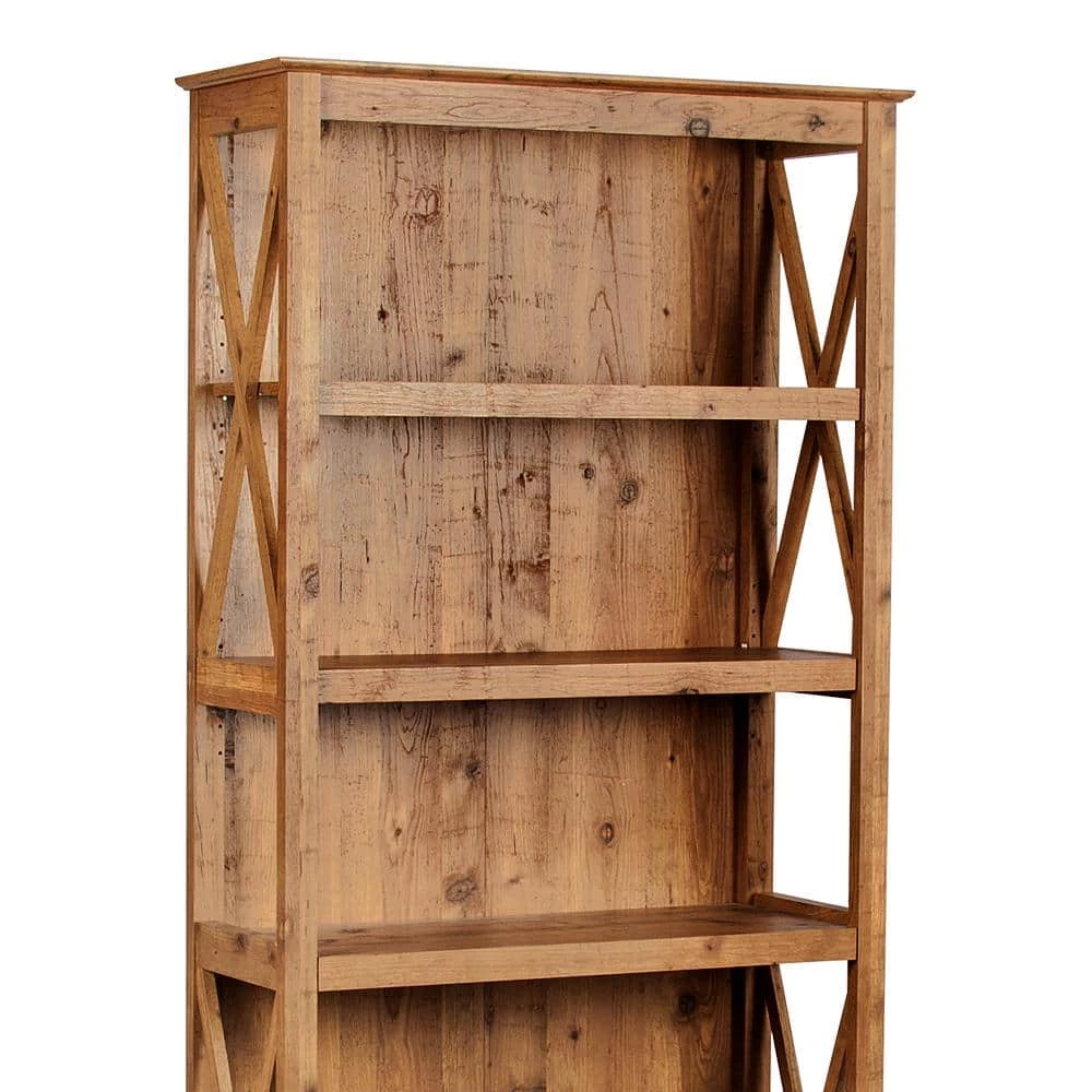 Add to the country-inspired charm of a casual space with this five-tier bookcase, a tasteful element perfect for use in a bedroom, home office, or main living area. This delightful bookshelf is given a rustic brown finish with natural-looking wood knots that lend authenticity. Open sides with cross-bar trim deliver stylish ambiance and security to keep books and decor in place. Find plenty of space on five separate shelves, and rest easy with the use of an included tip-over restraint kit. This is made out of MDF and particle board.