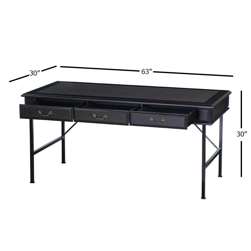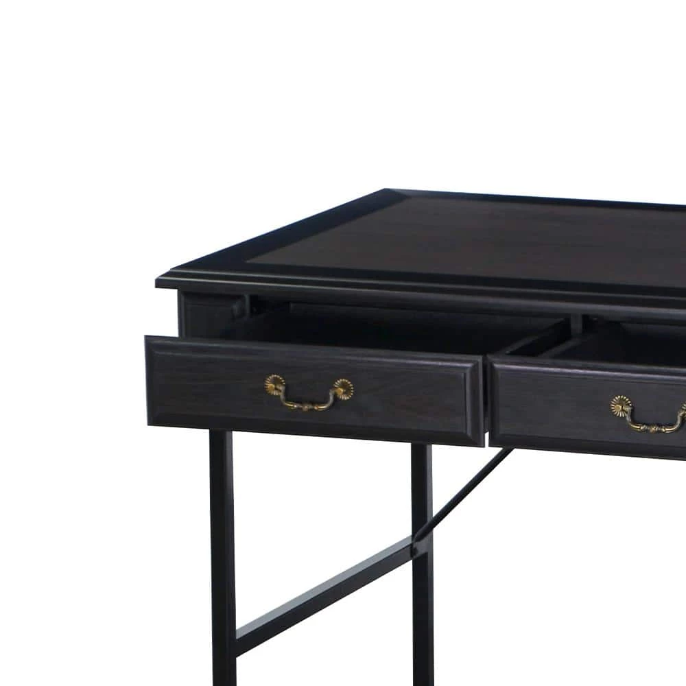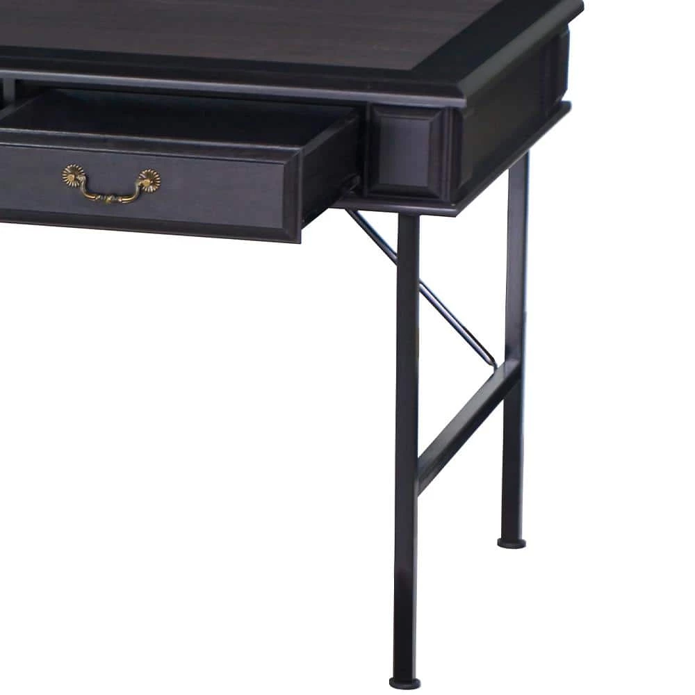 - An espresso finish writing desk with a metal base lends classic style to your home or professional office.