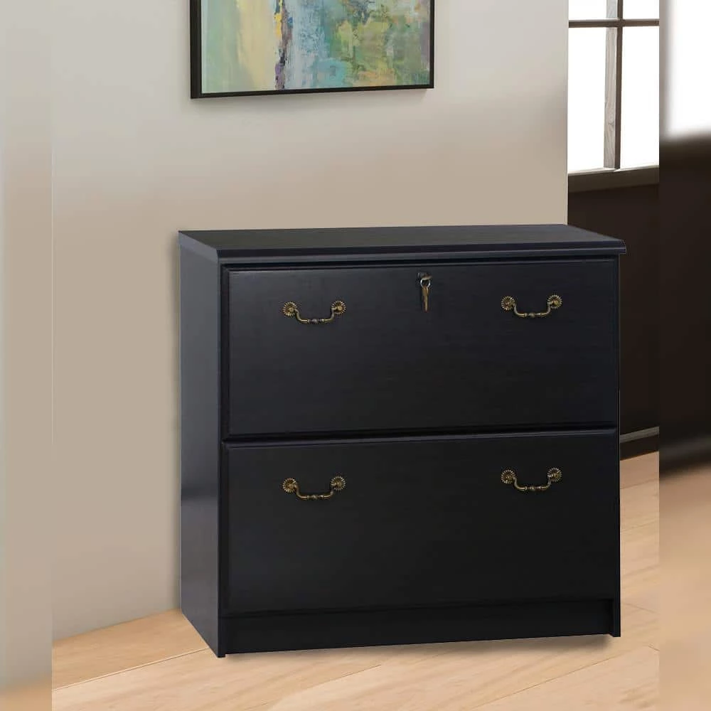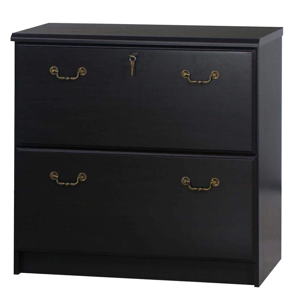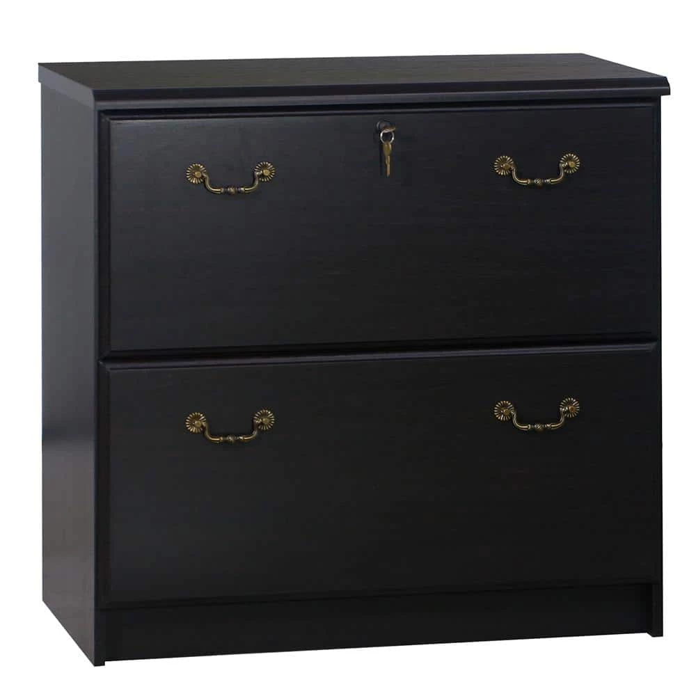 - An espresso finish two-drawer filing cabinet lends classic style to your home or professional office.