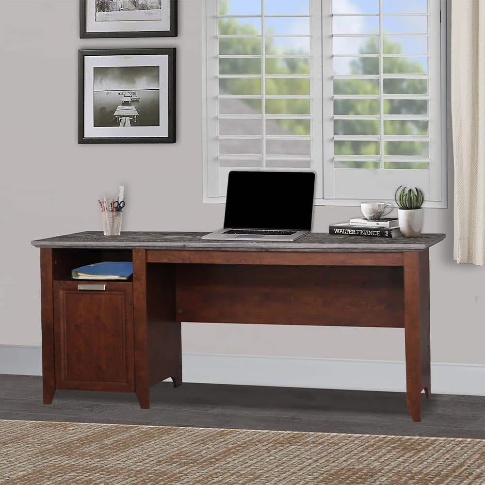- Rich cherry and gray oak two-tone finish adds warm, inviting style to any workspace.