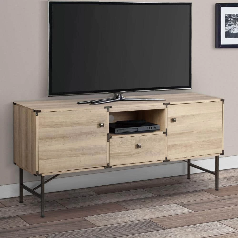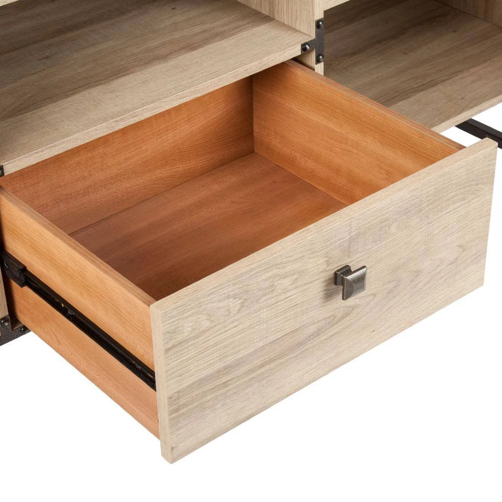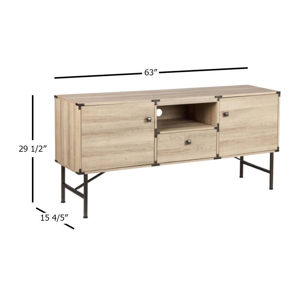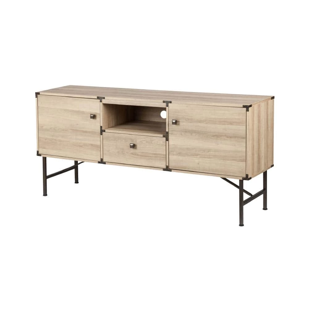 Update your office space with a handy organizational must-have. Equipped with a center drawer and an open storage cube, this light oak finished file cabinet makes it easy to keep workday essentials neatly put together. The expansive, rectangular surface allows it to double as a desk. The sleek metal legs and metal bracket accents add a cool, industrial touch to the design. Assuring your media accessories are safe from cracking and dust.