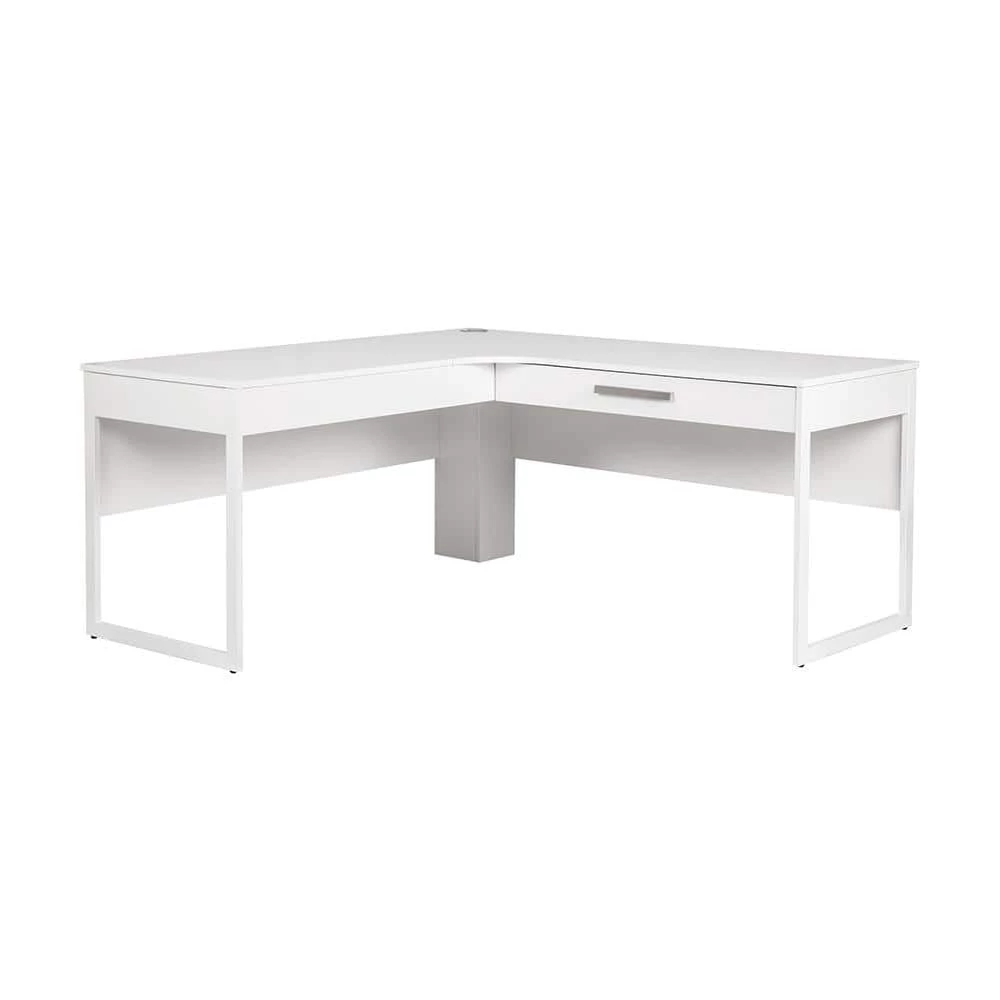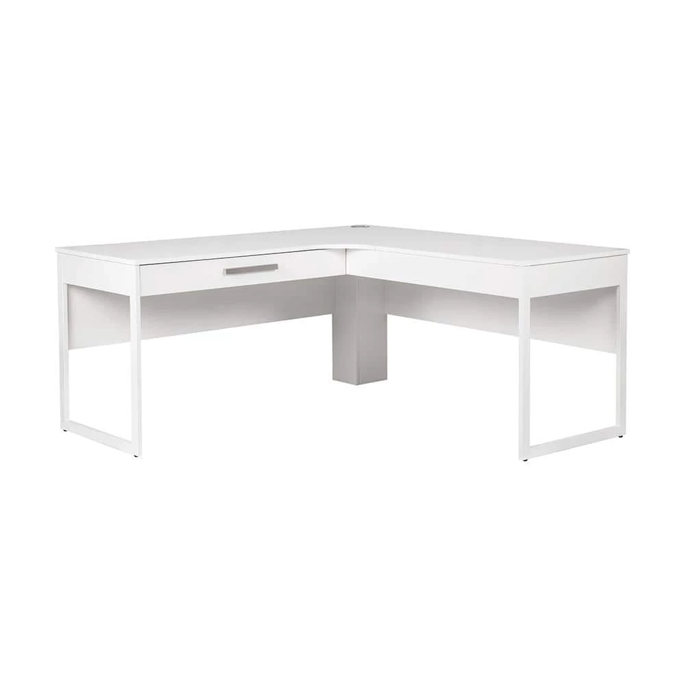 Settle into a productive workday with this fashionable and functional office desk. This white, L-shaped desk offers expansive surface space and a storage drawer for effortless organization. From the home office to the corner office, its sleek and ultra-modern silhouette makes a strikingly attractive addition to any workspace. This would be a focal point to your living room side corner accent which allows a proper placement and display your stuffs in an organized way.