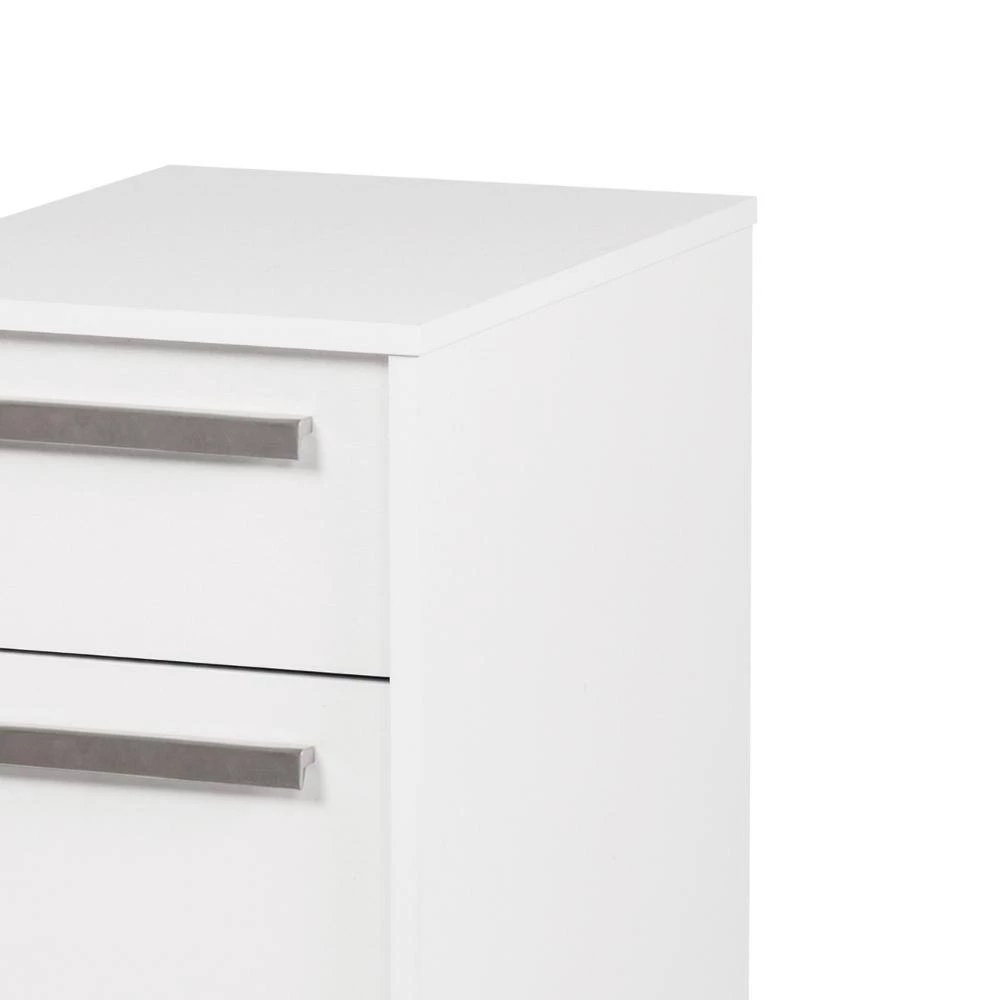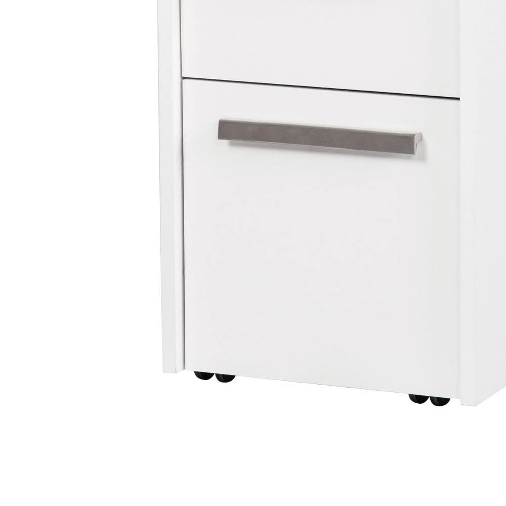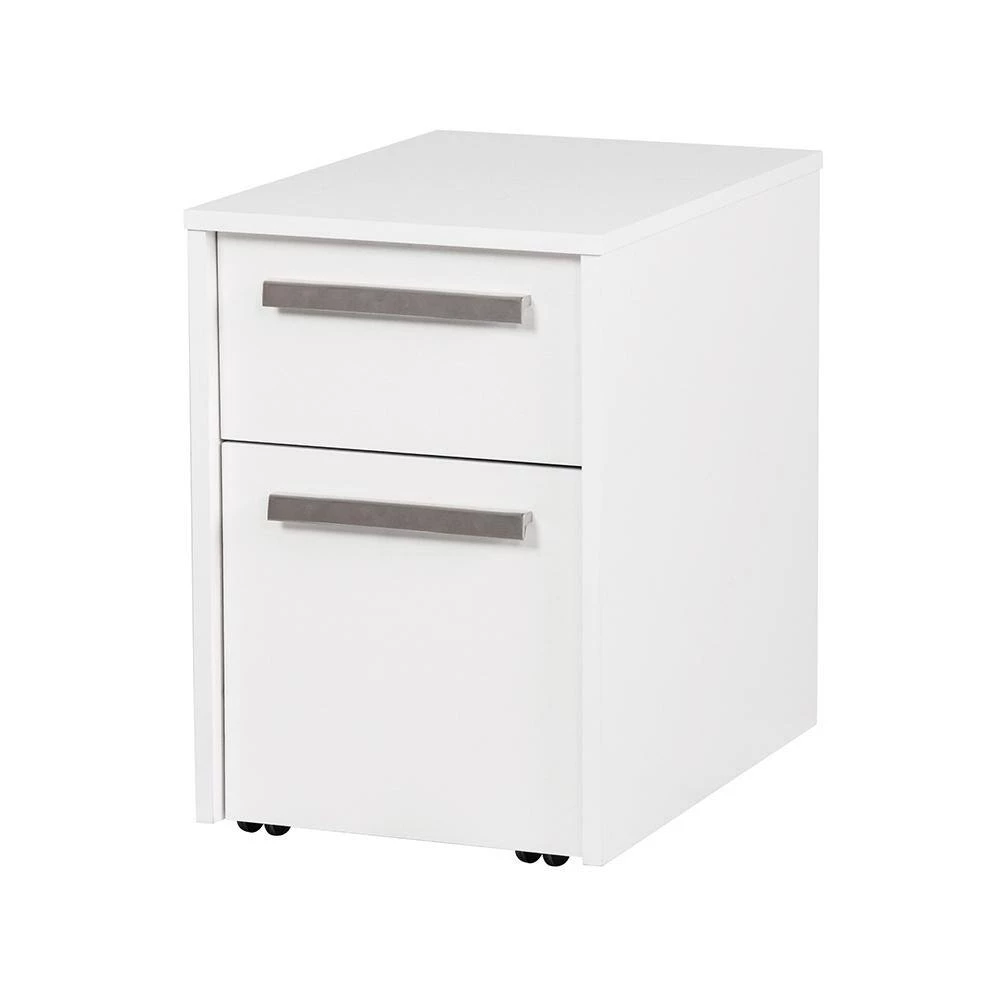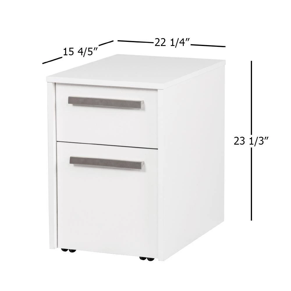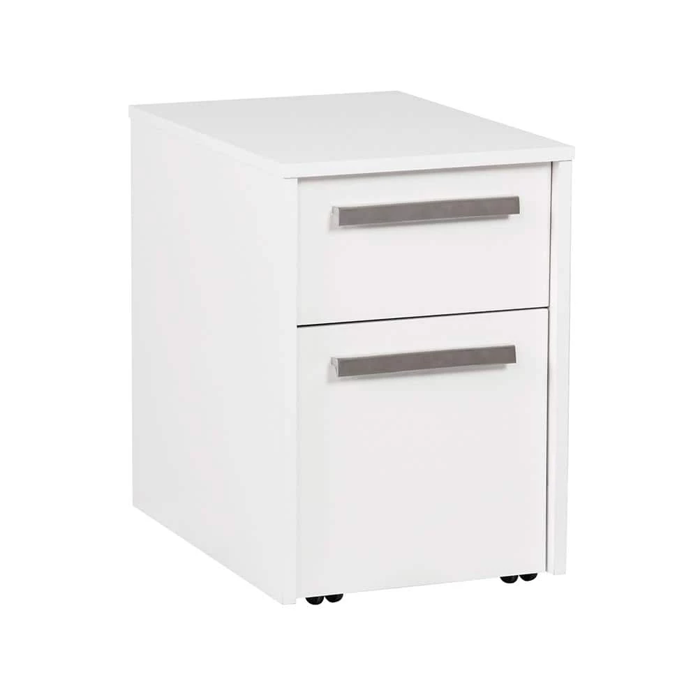Finally get all that paperwork squared away with the easy storage potential of this Alaska two-drawer mobile file cabinet. Perfect for a contemporary home office, the home office cabinet boasts one standard-drawer and one lateral file-drawer with a hanging bar. A bright white finish is a versatile choice that blends into a variety of modern spaces with ease. Caster wheels underneath make moving this file cabinet organizer simple and painless.