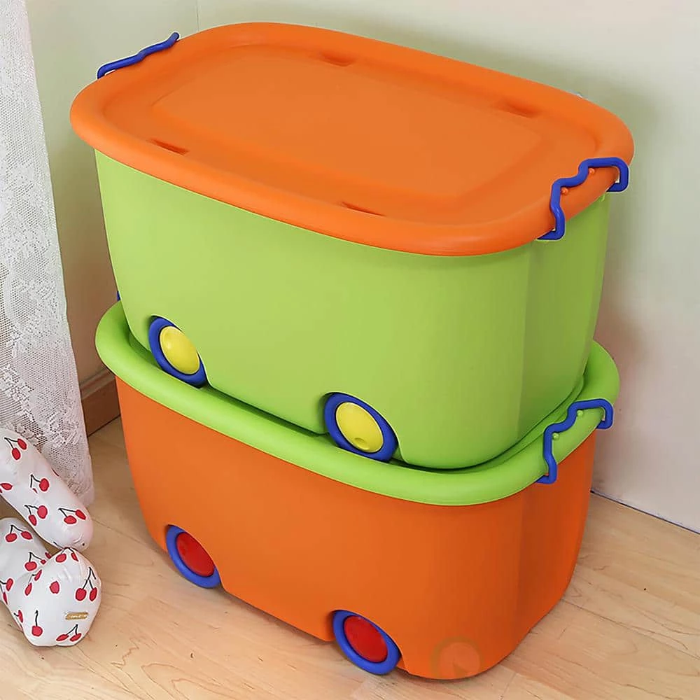 Stackable Toy Storage Box with Wheels is a great storage solution for any kids’ bedroom or playroom. Handles and wheels allow you to easily move the toy box from room to room and a grooved lid allows multiple boxes to be stacked securely. It’s playful colors will add cheer to your playroom and invite your kids to play.