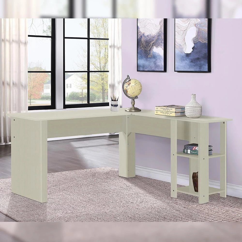 This attractive, L-shaped office desk flaunts a sleek, streamlined silhouette that’s sure to stand out. The expansive, beveled surface allows plenty of space to hold a computer and spread out important paperwork. Two lower storage shelves offer the added convenience of extra storage space. Treated to a rich espresso finish, this desk is a handsome addition to any modern office. Put your luxury and expensive gaming monitors safely.