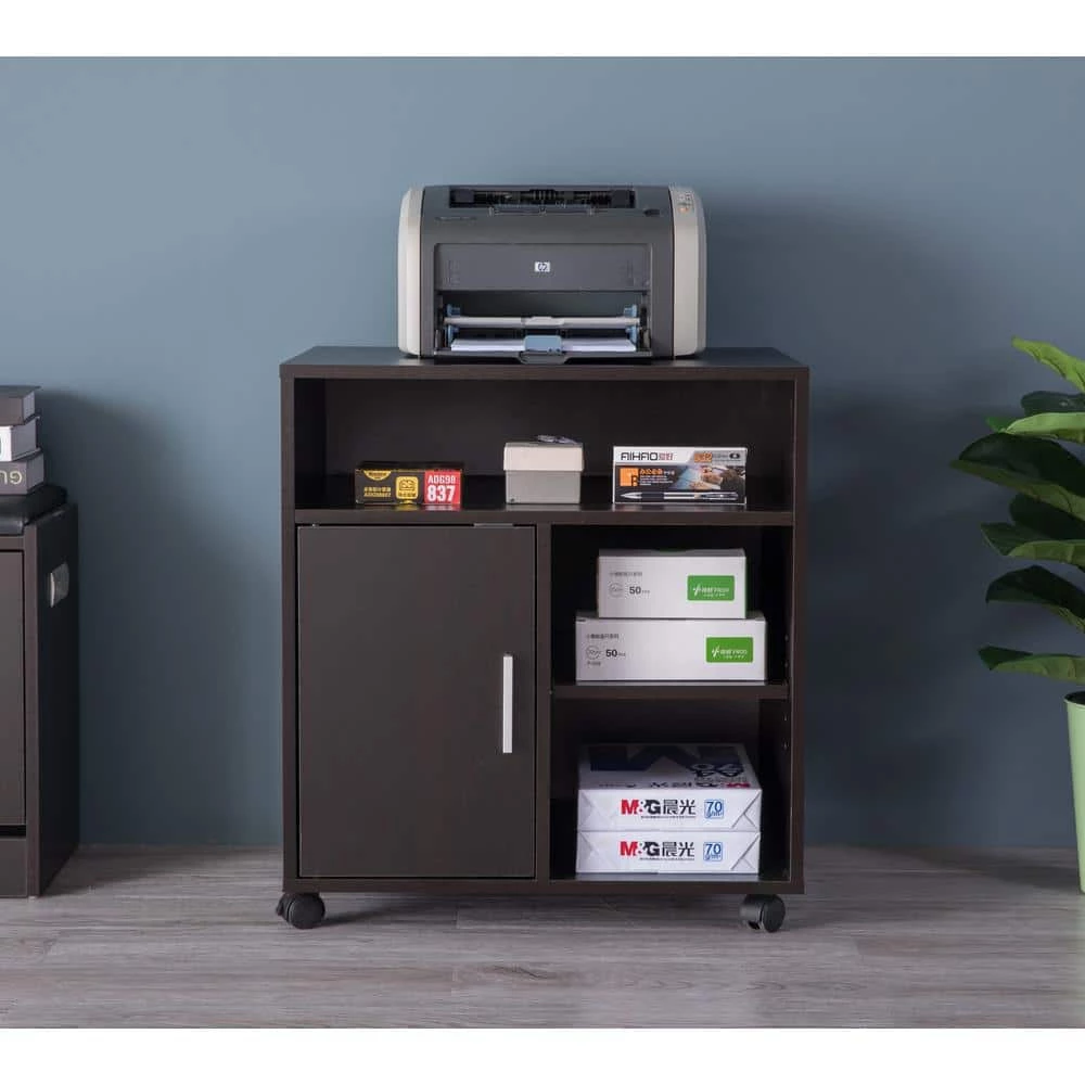 Save up on space and have on the go mobility with this storage printer stand. Composed out of durable wood, this stand offers a sturdy exterior to store printer, books, files, and kitchen storage. Open storage space and closed storage compartment provides plenty of space to store office and kitchen items in. Basic furniture makes all the difference in your office.