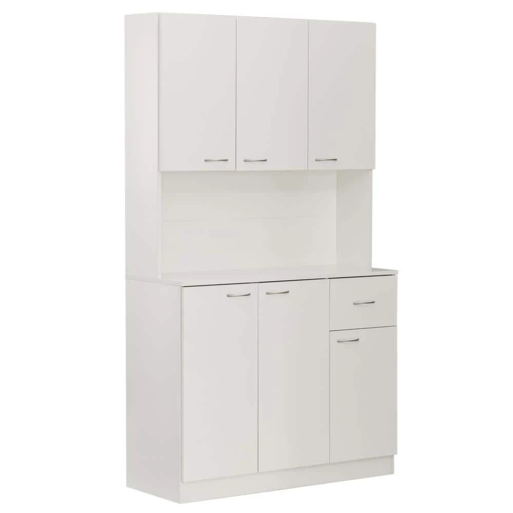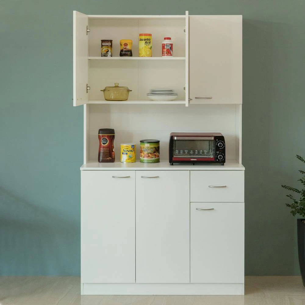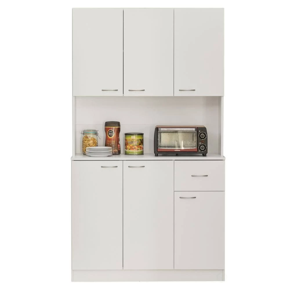Keep your kitchen essentials accessible and organized with this storage pantry. Modern style will easily fit in with any style room decor. Open storage space and closed storage compartments offer plenty of space to accommodate your kitchen essentials organized. Countertop is perfect to keep your microwave and other small appliances handy. Simplify and organize your kitchen utensils and get your valuable space back.