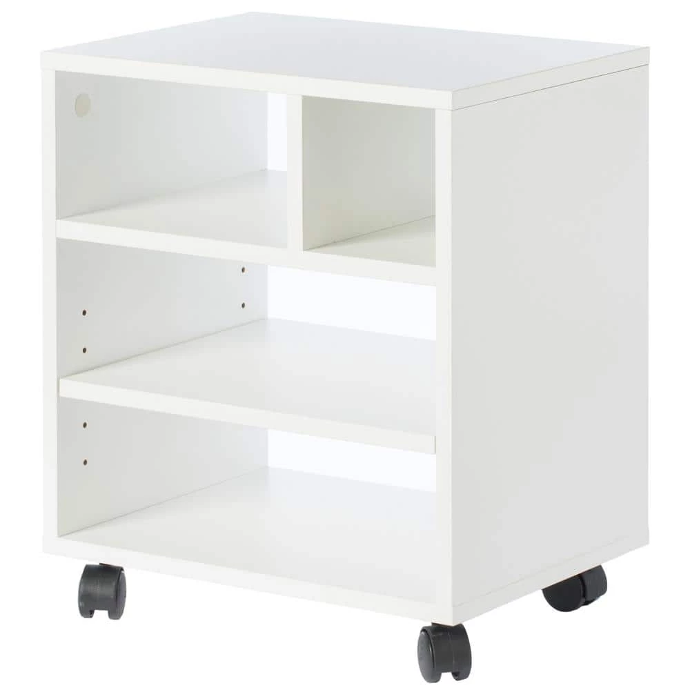 Save up on space and have on the go mobility with this storage printer stand. Composed out of durable wood, this stand offers a sturdy exterior to store printer, books, files, and scanner. Open storage space and closed storage compartment provides plenty of space to store office essentials handy and organized. Basic furniture makes all the difference in your office.